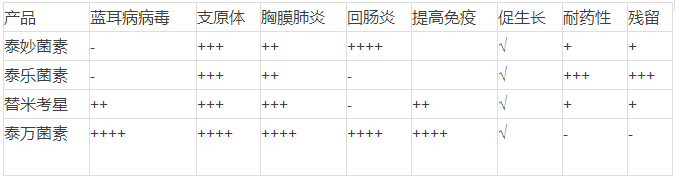 泰萬菌素和泰妙菌素是完全不同的產品。泰妙菌素不是大環內酯類抗生素,是雙萜類藥物,只能抑制支原體的生長和繁殖;而泰萬菌素可以殺滅支原體,泰萬菌素對支原體的最小抑制濃度是泰妙菌素的十分之一。泰萬菌素還具有增強非特異性免疫、抑制藍耳病病毒在巨噬細胞的復制、促生長的功能,是一種更適合規模化豬場的全能性抗生素。