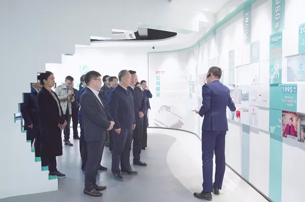 馬有祥一行首先參觀了回盛生物文化展廳,通過回盛創業征程長廊、企業文化墻詳細了解回盛生物的發展歷程及理念,并聽取了張衛元董事長關于回盛生物未來發展規劃的匯報。他對回盛生物成立20年來,在科技成果轉化、獸藥“智能智造”、社會服務與企業文化建設等方面所取得的成就給予了充分肯定,對公司高度重視自主創新、人才培養表示高度贊賞。