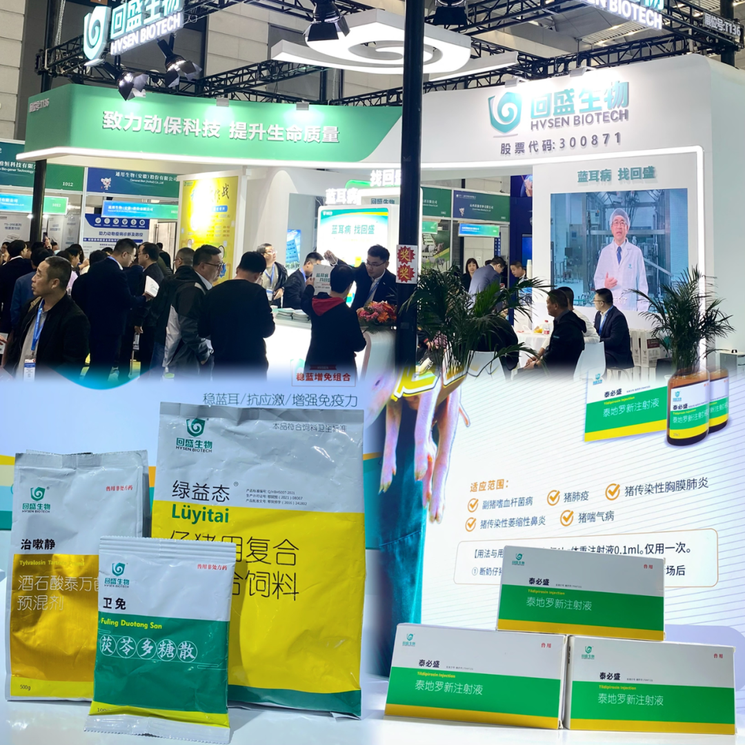 在T136展臺,回盛生物旗下包括防治豬藍(lán)耳病的“穩(wěn)藍(lán)增免”方案、全新一代治嗽靜(20%酒石酸泰萬菌素預(yù)混劑)、泰必盛(泰地羅新注射液)等多款產(chǎn)品紛紛亮相;客戶經(jīng)理、技術(shù)老師、研發(fā)同事與來自全國各地的合作伙伴交流、分享公司的最新產(chǎn)品和研究成果。