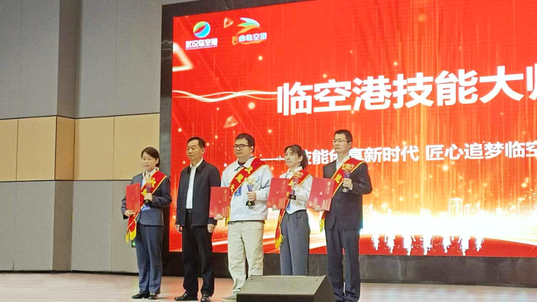 在表彰環(huán)節(jié),來自我司研發(fā)分析室的鄭春紅(上圖左一)榮獲“臨空港技能大師”稱號(hào)并登臺(tái)領(lǐng)獎(jiǎng)。