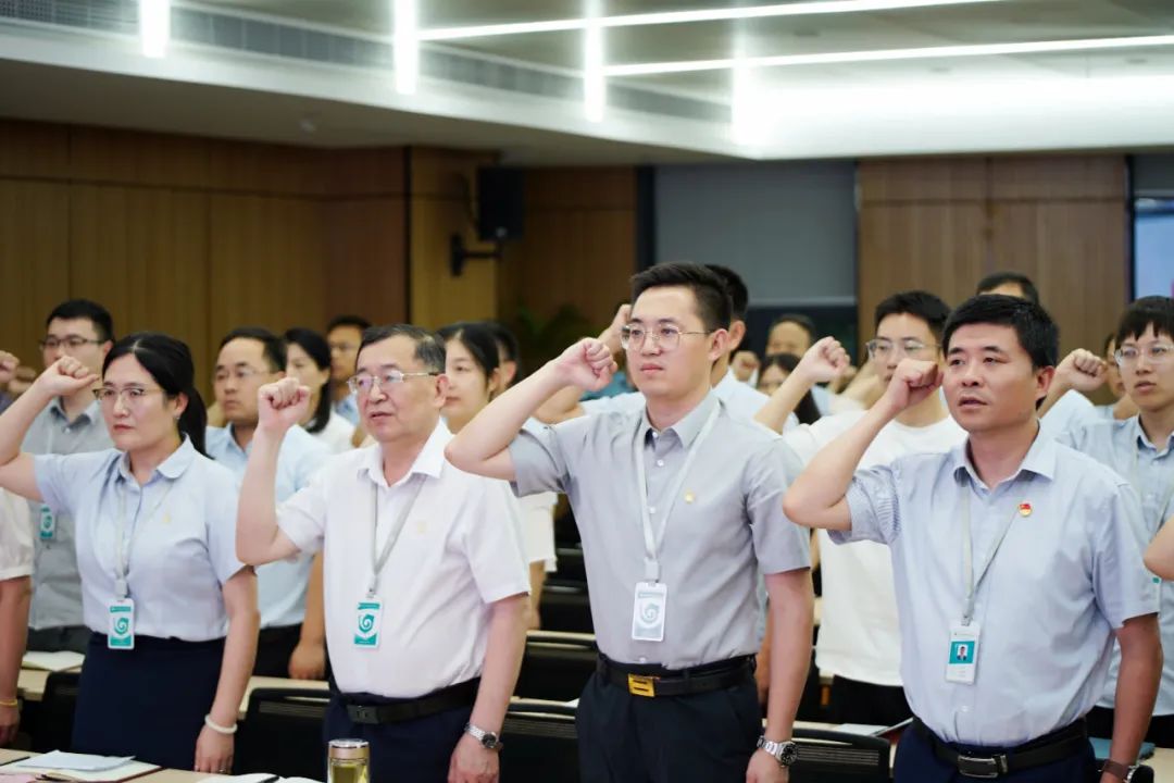 公司首席顧問李名家、副總經(jīng)理李碩,公司副總經(jīng)理、湖北回盛總經(jīng)理韓杰、武漢新華星總經(jīng)理張翠平、黨委書記趙敏出席,與現(xiàn)場及線上的黨員、入黨積極分子、共青團(tuán)員、各部門主管及以上干部共同參與了這一莊嚴(yán)時刻。